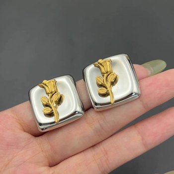 عتيق مطلي بالذهب الحقيقي صلب رومانسي وردي كاميليا زهرة مكتنزة قرط صغير مرصع