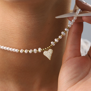 بيع بالجملة 18k PVD مطلية بالذهب صلب مقاوم للصدأ قلب مع الزركون شكل معبدة قلادة أزياء المرأة مجوهرات اللؤلؤ
