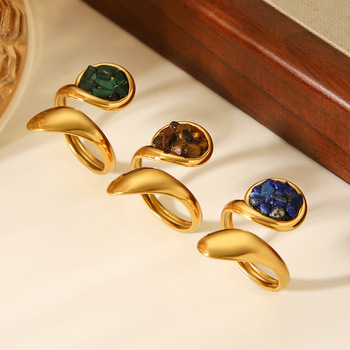 Anelli di pietre naturali colorate schiacciate da donna in acciaio inossidabile regolabile ragazza anelli di moda unici gioielli ipoallergenici