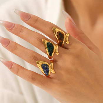 다채로운 짓 눌린 자연석 반지 여자 스테인레스 스틸 조정 가능한 소녀 독특한 패션 반지 저자 극성 보석