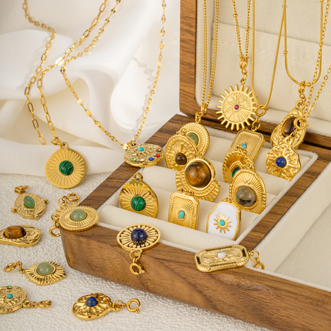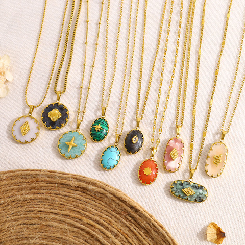14K Goud Vintage Rvs Ketting Diy Afneembare Natuursteen Hanger Charm Vrouwen Sieraden