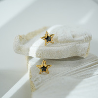 Zwart Zirkoon Geplaveid Stralend Goud Starburst Roestvrijstalen Oorknopjes Voor Meisjes